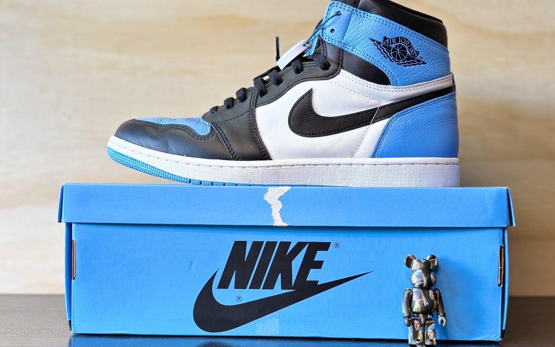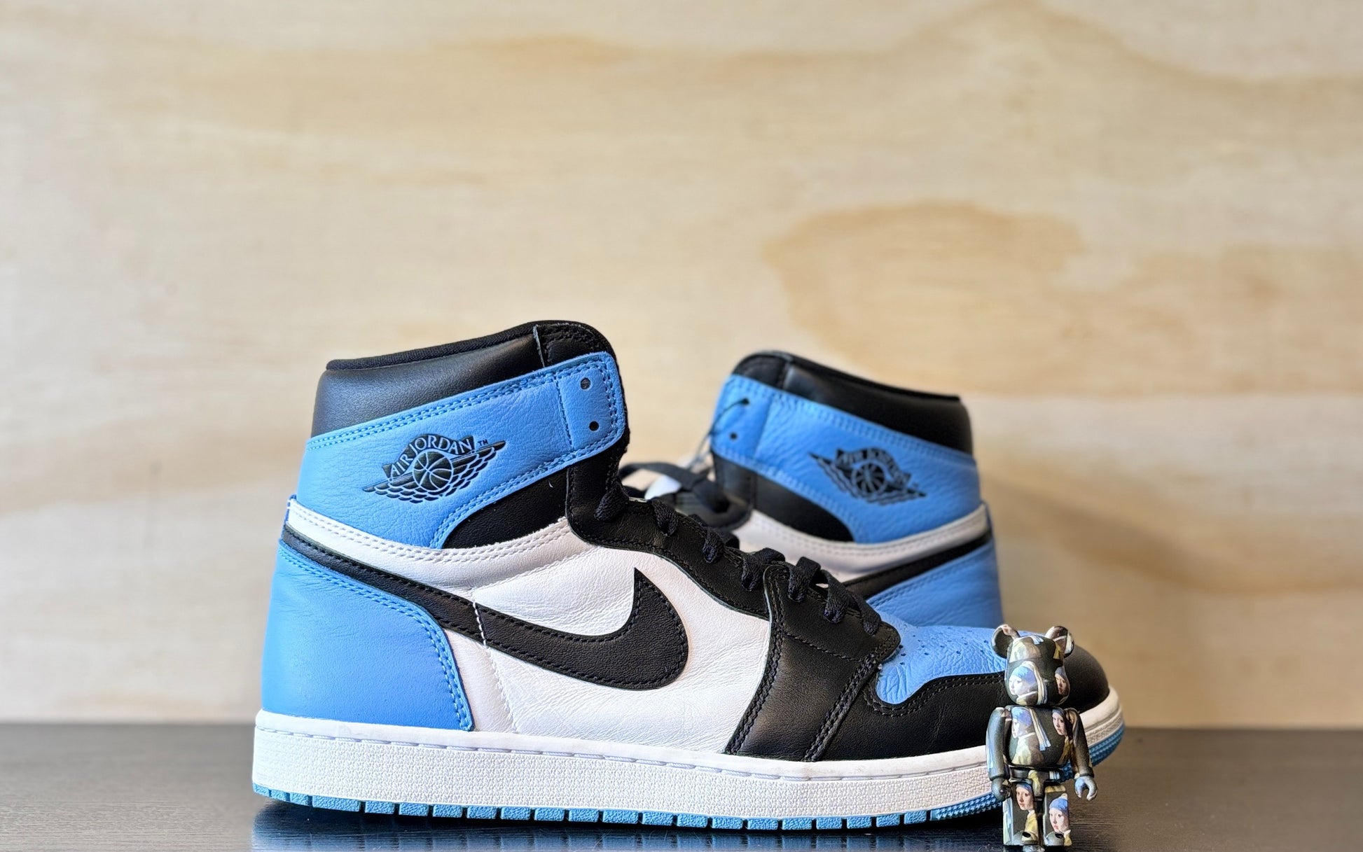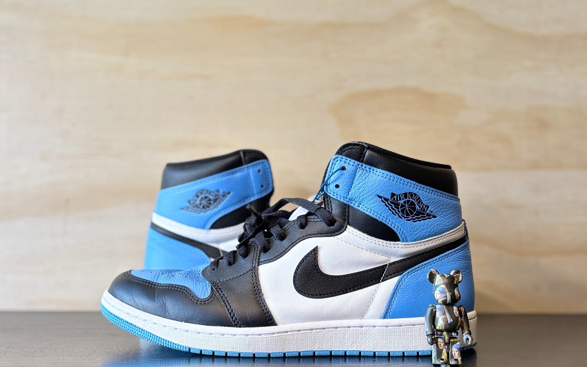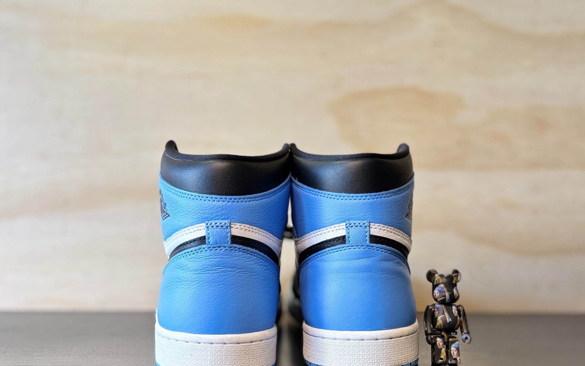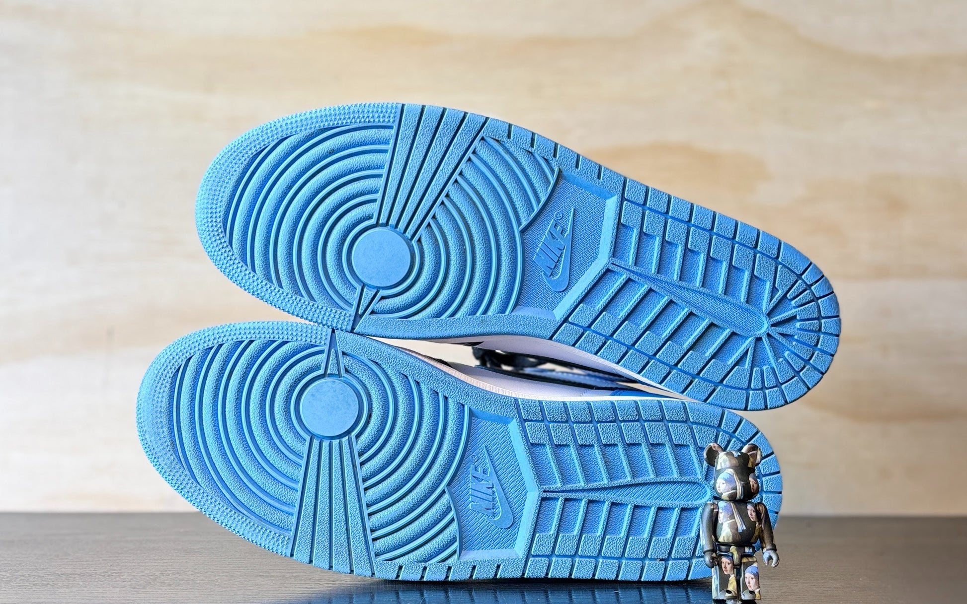 Inspired by Michael Jordan’s alma mater, the Air Jordan 1 Retro High OG ‘UNC Toe’ brings back the distinctive color blocking originally featured on the ‘Bred Toe’ AJ1 from 2018. The high-top utilizes an all-leather upper with white quarter panels and contrasting hits of black on the signature Swoosh and forefoot overlay. University Blue accents make their way to the toe box, heel and collar flap, marked with a retro Wings logo on the lateral side. A woven Nike tag atop the breathable nylon tongue delivers an OG-inspired touch. Lightweight cushioning arrives via a white rubber midsole with an Air-sole heel unit encapsulated in a polyurethane wedge. Underfoot, a blue rubber outsole provides durable traction with every step.
