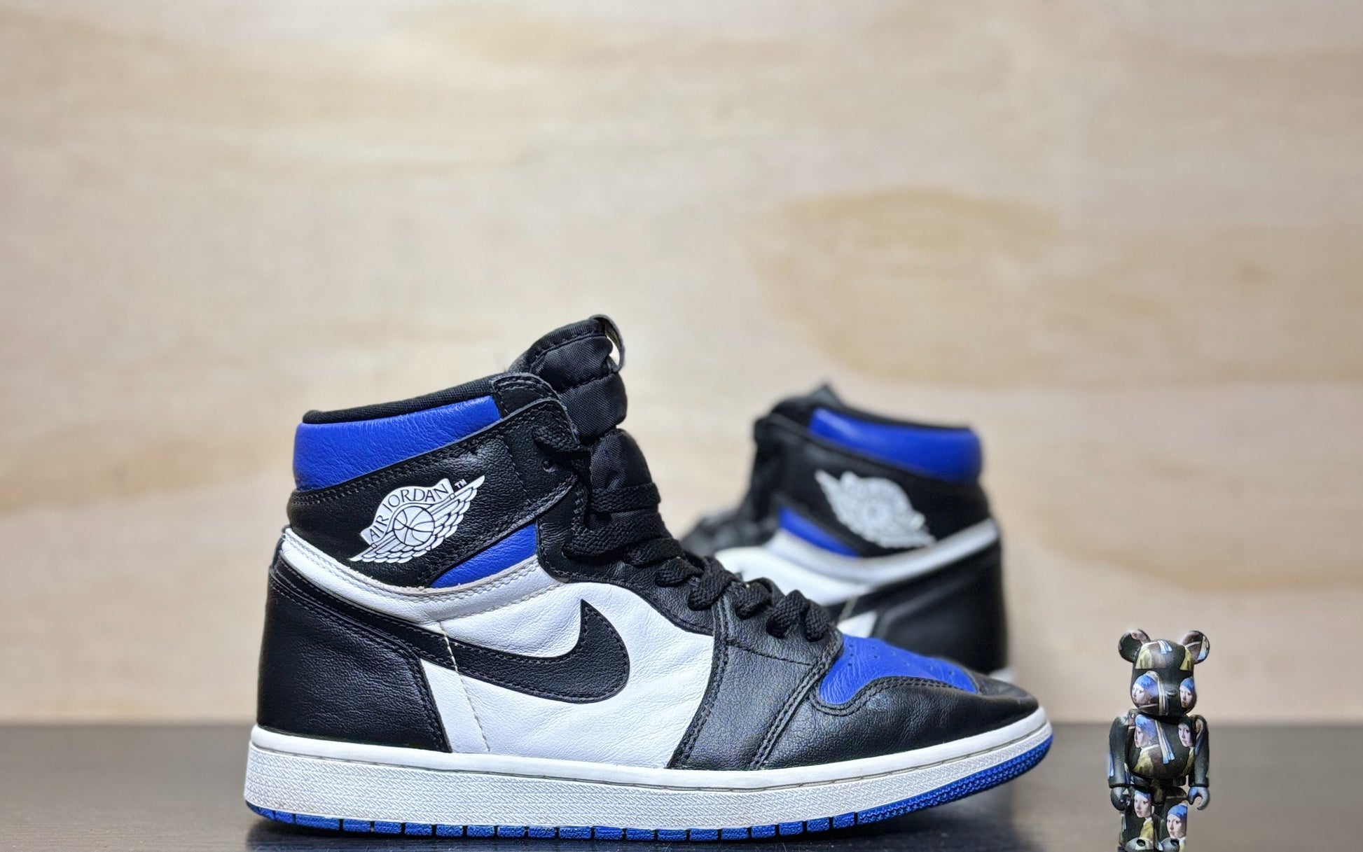The Air Jordan 1 Retro High OG 'Royal Toe' applies a familiar blend of colors to the iconic silhouette. The all-leather upper features a white base with contrasting black overlays and pops of Game Royal at the collar, toe box and rubber outsole. A lightly padded nylon tongue in black is topped with a Nike Air tongue tag, while the classic Jordan Wings logo appears in white on the lateral collar flap.