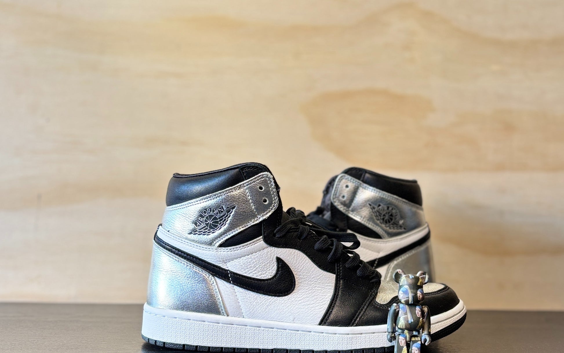 Jordan Brand continued its "Black Toe" theme with the Air Jordan 1 Silver Toe (W). Arriving in women’s sizing, the Silver Toe added a new look to Jordan’s ever-growing women’s collection. The women's Jordan 1 Silver Toe (W) is a spinoff of the 2018 Jordan 1 High Gold Toe, replacing metallic gold patent leather construction with metallic silver crinkled leather. White and black leather comprise the mid-panel, toe guard, and Swoosh as a nod to other classic Black Toe designs. Nike Air branding on the tongue, an Air Jordan Wings logo on the ankle, and a white/black sole complete the design.