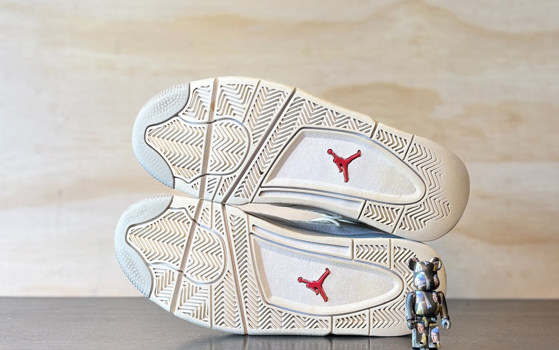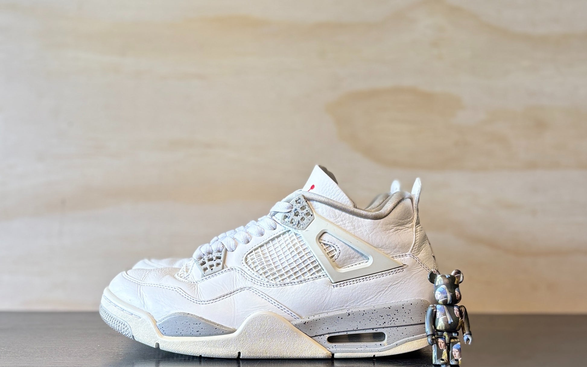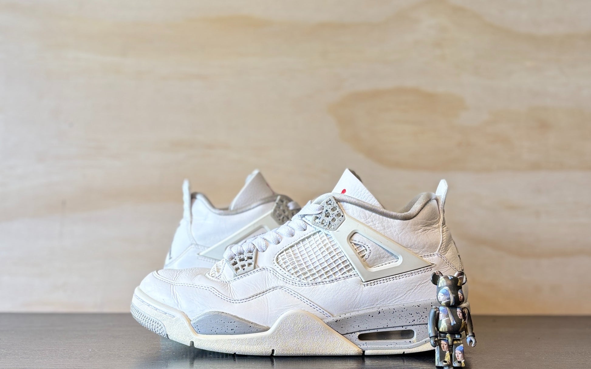 The Air Jordan 4 Retro ‘White Oreo’ features a design theme that recalls the original ‘Oreo’ AJ4 from 1999. The black tumbled leather upper of the older shoe is replaced by a clean white finish, though the speckled molded eyelets in Tech Grey remain the same. The neutral hue is repeated on the Jumpman heel logo and polyurethane midsole, featuring encapsulated Air cushioning in the forefoot and a visible unit under the heel. A second Jumpman adorns the tongue in a contrasting pop of Fire Red.