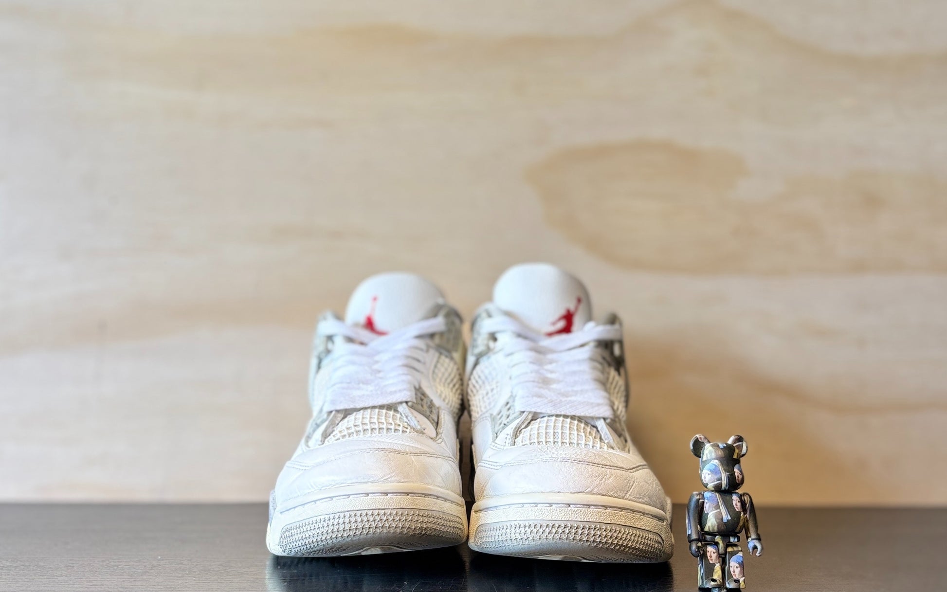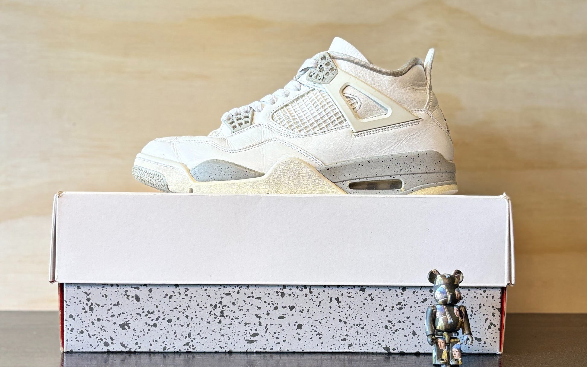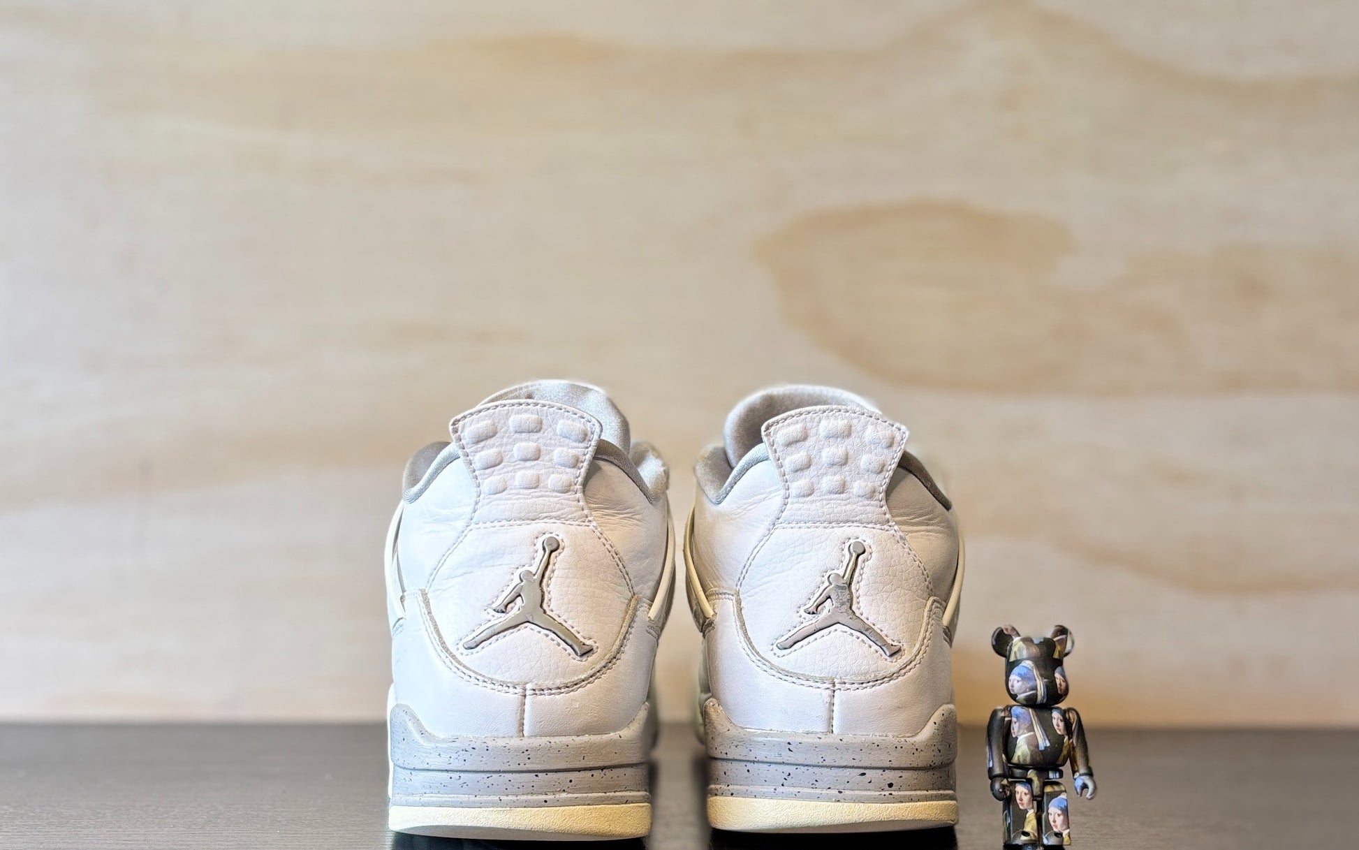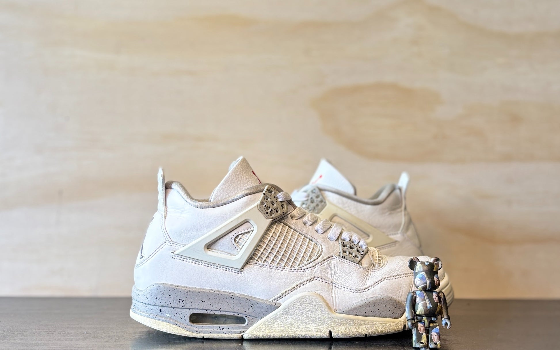 The Air Jordan 4 Retro ‘White Oreo’ features a design theme that recalls the original ‘Oreo’ AJ4 from 1999. The black tumbled leather upper of the older shoe is replaced by a clean white finish, though the speckled molded eyelets in Tech Grey remain the same. The neutral hue is repeated on the Jumpman heel logo and polyurethane midsole, featuring encapsulated Air cushioning in the forefoot and a visible unit under the heel. A second Jumpman adorns the tongue in a contrasting pop of Fire Red.
