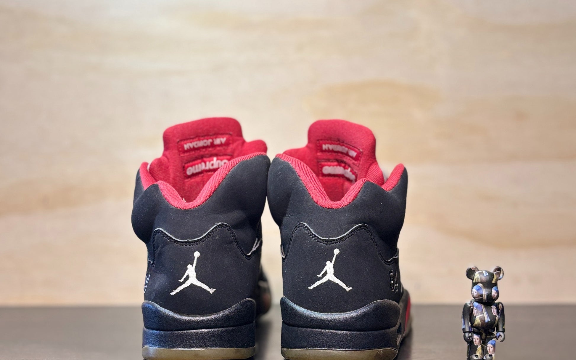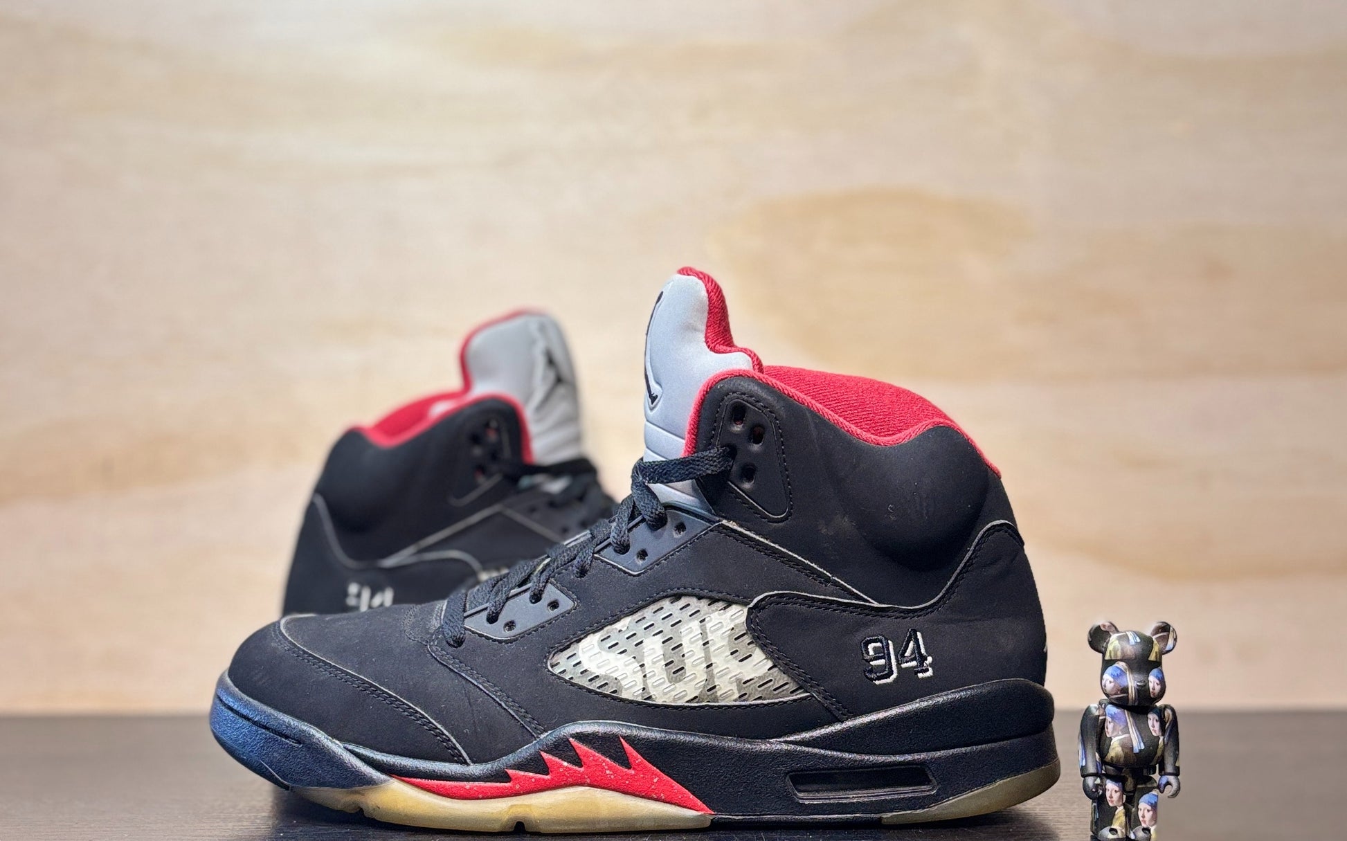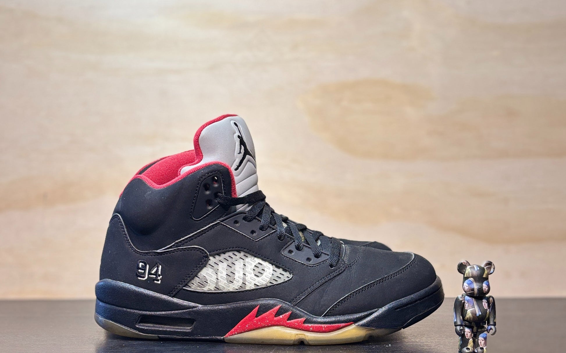 When the Jordan Brand posted a photo of Michael Jordan (shot by Terry Richardson) wearing a Jordan and Supreme branded t-shirt on their Instagram, fans went crazy. Rumors surrounding a Supreme Air Jordan 5 were true. Dropped in October of 2015 in three colorways — White, Black, and Desert Camo — the sneaker was the first and only brand collaboration for the Air Jordan 5 line. Released alongside a small capsule collection of clothing, the sneaker features Supreme branding across the netting and the number ‘94’ on the heel representing the year Supreme was founded.