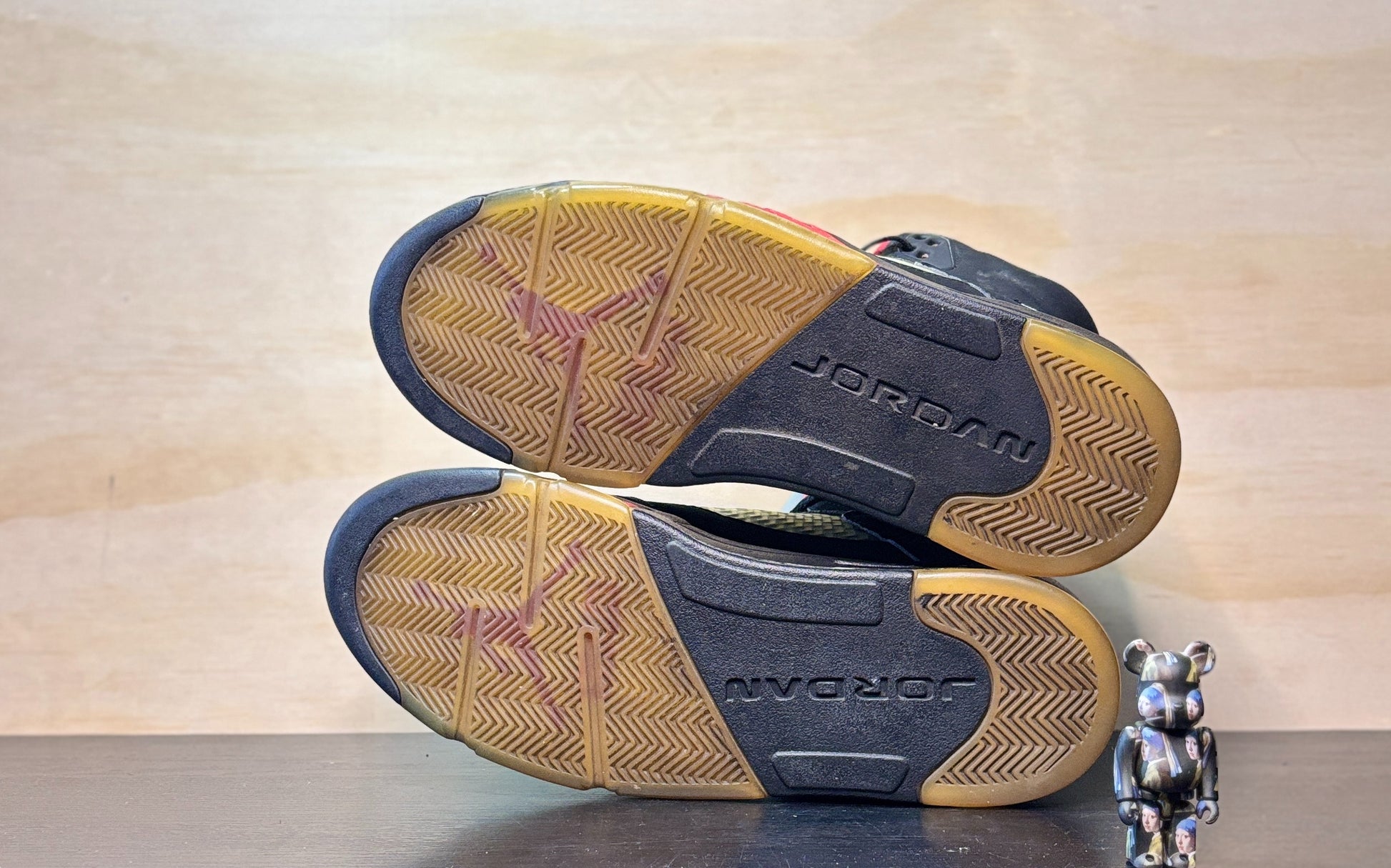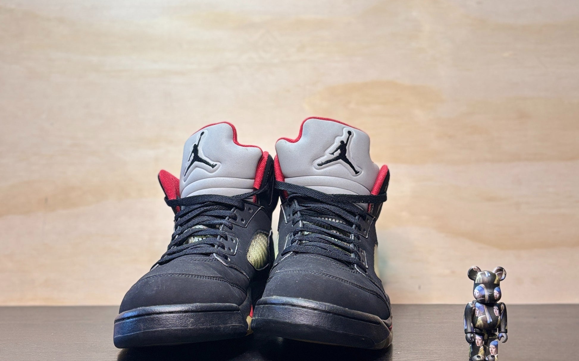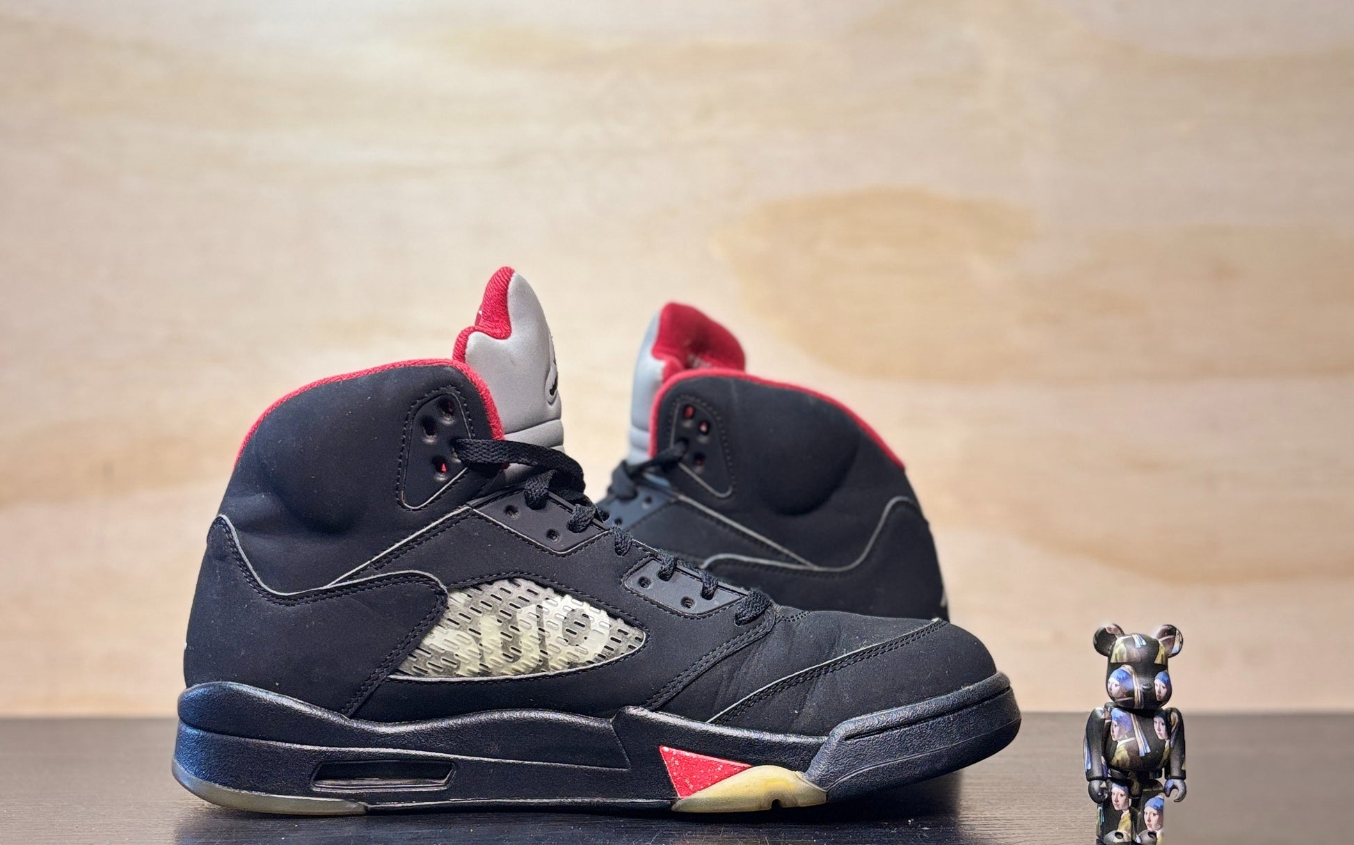 When the Jordan Brand posted a photo of Michael Jordan (shot by Terry Richardson) wearing a Jordan and Supreme branded t-shirt on their Instagram, fans went crazy. Rumors surrounding a Supreme Air Jordan 5 were true. Dropped in October of 2015 in three colorways — White, Black, and Desert Camo — the sneaker was the first and only brand collaboration for the Air Jordan 5 line. Released alongside a small capsule collection of clothing, the sneaker features Supreme branding across the netting and the number ‘94’ on the heel representing the year Supreme was founded.