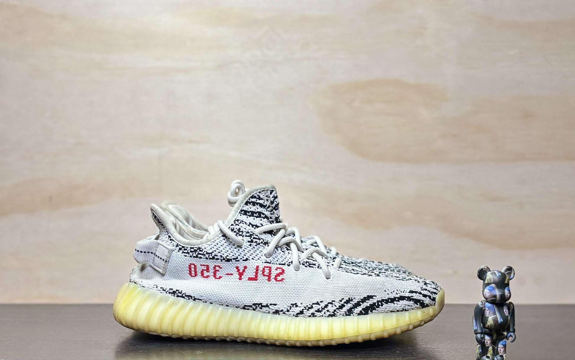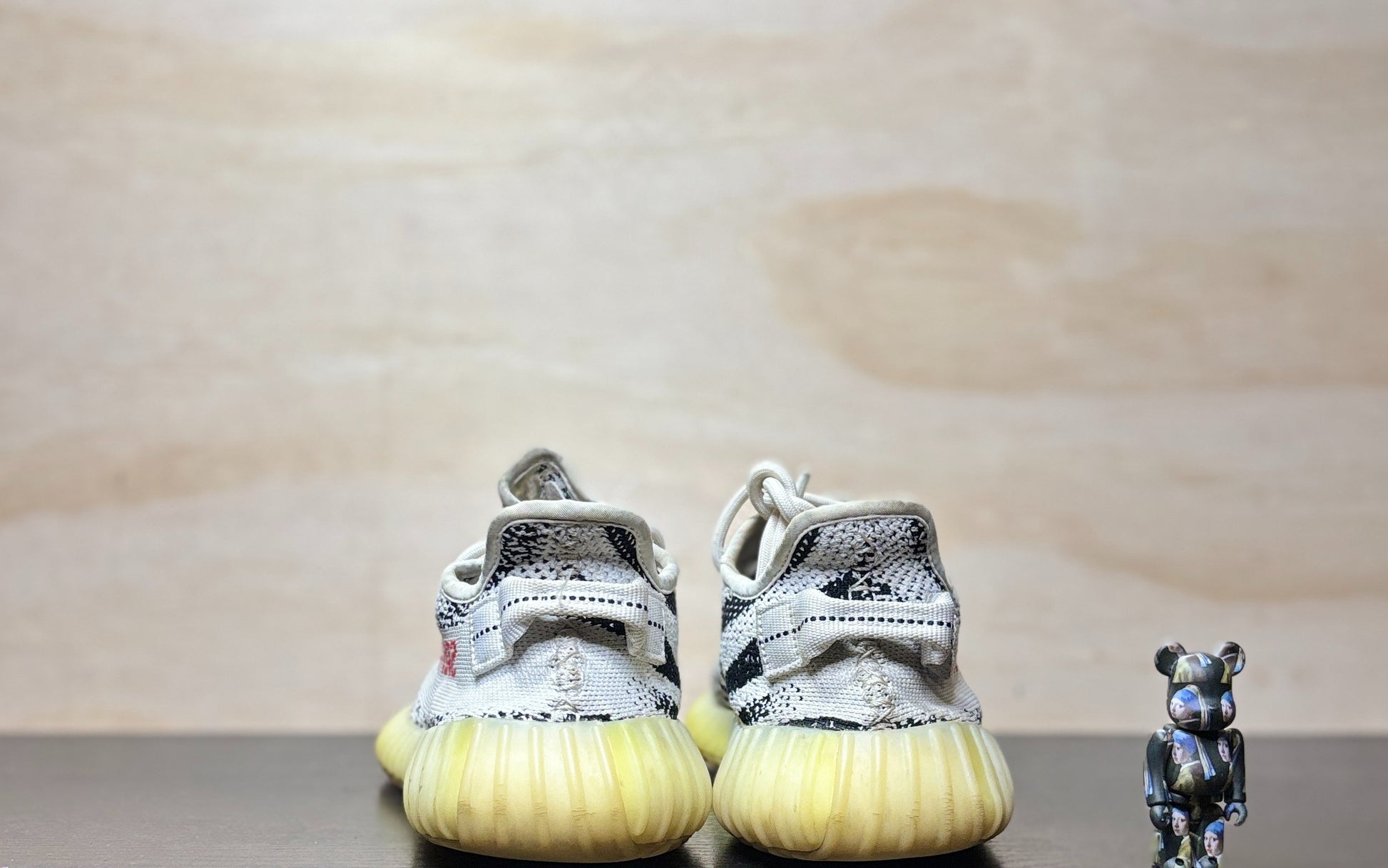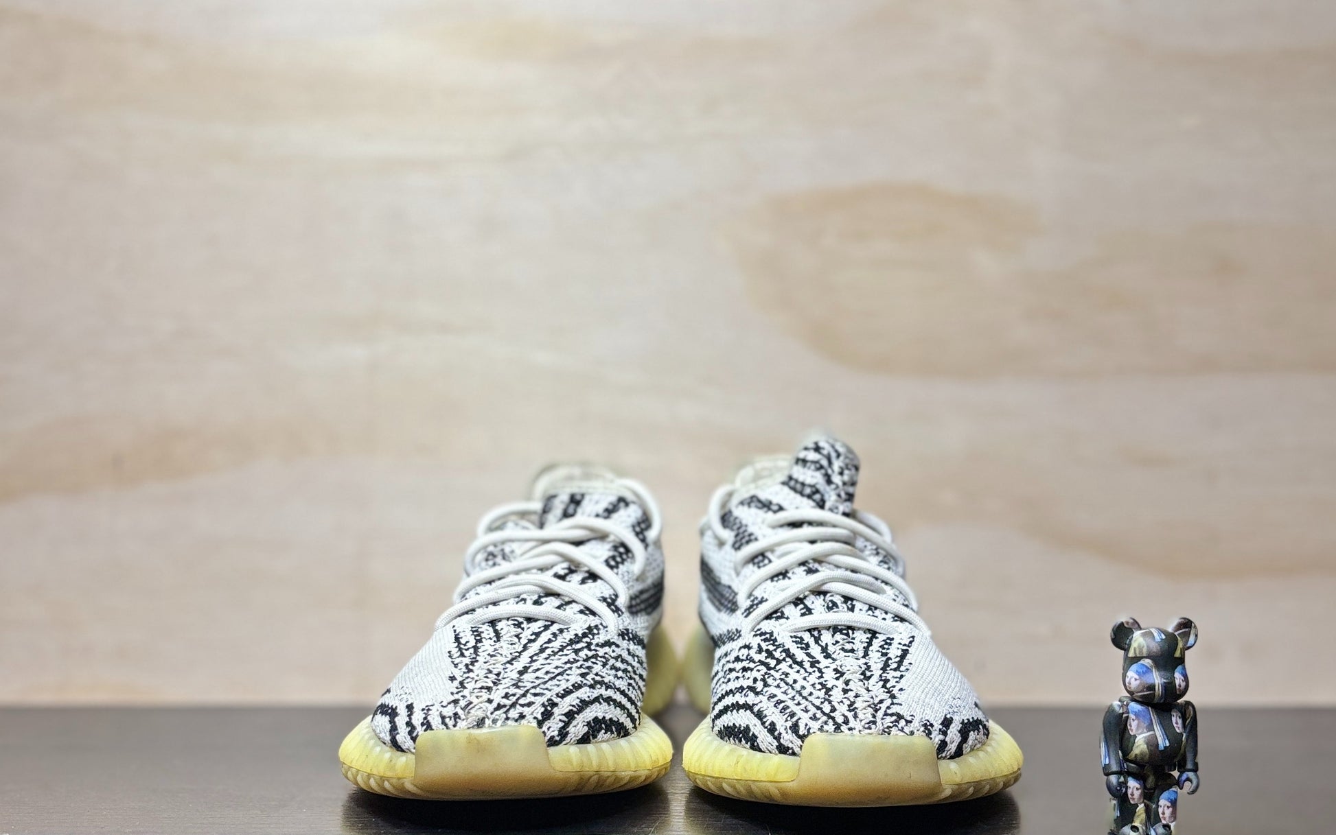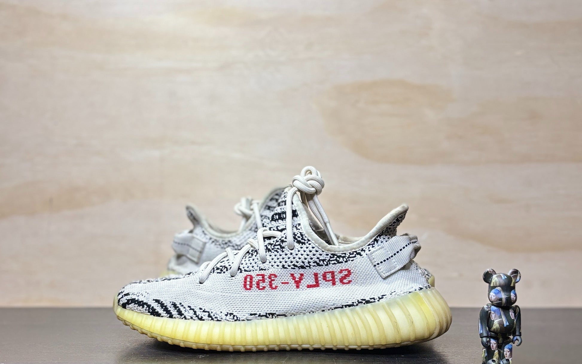 Debuted in 2017, the adidas Yeezy Boost 350 V2 Zebra is known as one of the most renowned colorways in the Yeezy line. It features a white and black marbled Primeknit upper with a white side-stripe and red "SPLY-350" text. At the base, a cushioned Boost sole provides comfort and support.